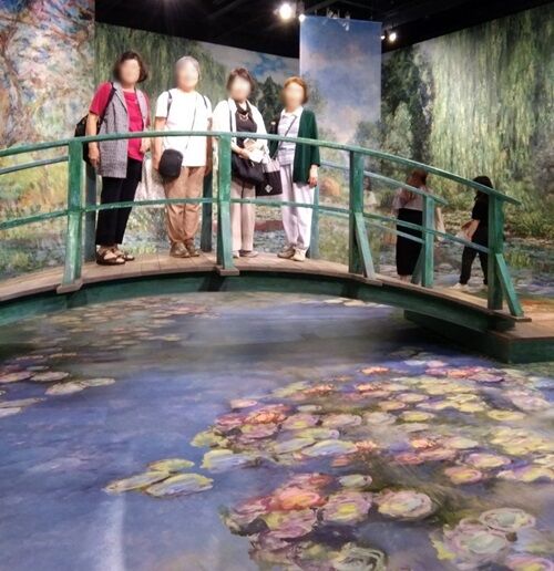 角川食道でビュッフェランチを楽しんだ後は、企画展『モネ イマージシブ・ジャーニー 僕が見た光』を鑑賞。モネの見た景色に没入する体感型デジタルアートで、360度の壁面にモネの世界が映し出され、一気に涼やかな気持ちになりました。